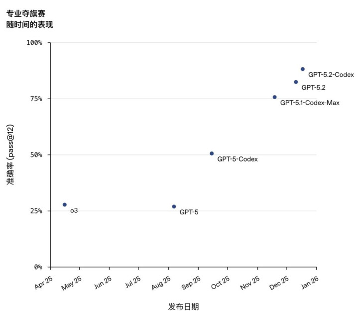 要是咱们谢额外去看OpenAI我方公布的基准测试阐明,会发现情况有些复杂。一方面,在像SWE-Bench Pro(一个评估模子建立真实寰球GitHub问题才气的测试)上,GPT-5.2-Codex的得分比前代有微幅升迁,达到了56.4%。在末端任务测试上,逾越则比拟透露。