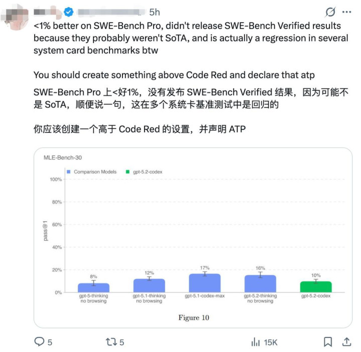有音信称,其在SWE-Bench Pro上的升迁还不到1个百分点,而且OpenAI此次莫得发布另一项更严格的“已考据”测试适度。这不由得让东谈主臆度,这个“最强”模子约略并莫得在工夫极限上齐备紧要冲突,以致可能在某些系统测试中出现了波动。