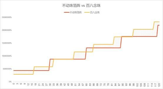 以下是45和40的一个好像对比,红线是45,橙线是百八念珠;这里的冷却是按照维纳斯通宝*5+制式史诗魔法石,统共提供了30.7%的CDR。