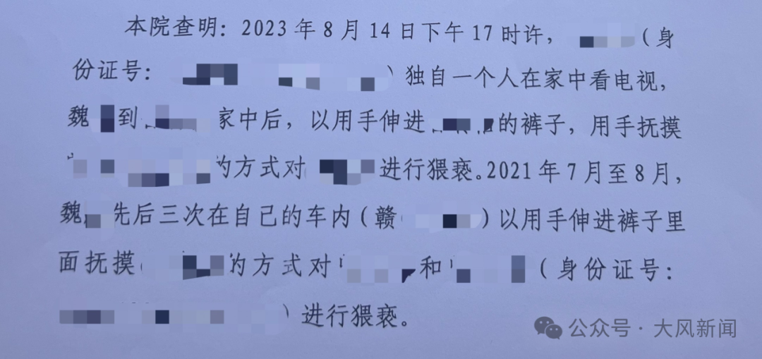 根据丰城市检讨院9月25日出具的《国度功令调停决定书》自大,检方查明,2023年8月14日下昼5时,陈丹独镇定家看电视,魏某到其家中对其进行猥亵。2021年7月至8月,魏某先后3次在我方车内,猥亵陈丹和另别称2009年出身的女孩。本院决定,折柳赐与两名调停肯求东谈主国度功令调停金8000元。
