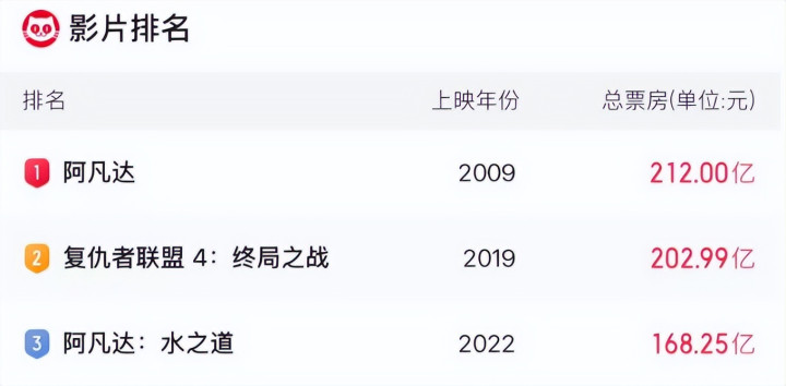而限定咫尺,《阿凡达》仍旧以212亿的票房稳居寰球影史名次榜首位,《阿凡达2》则以168亿位列季军。