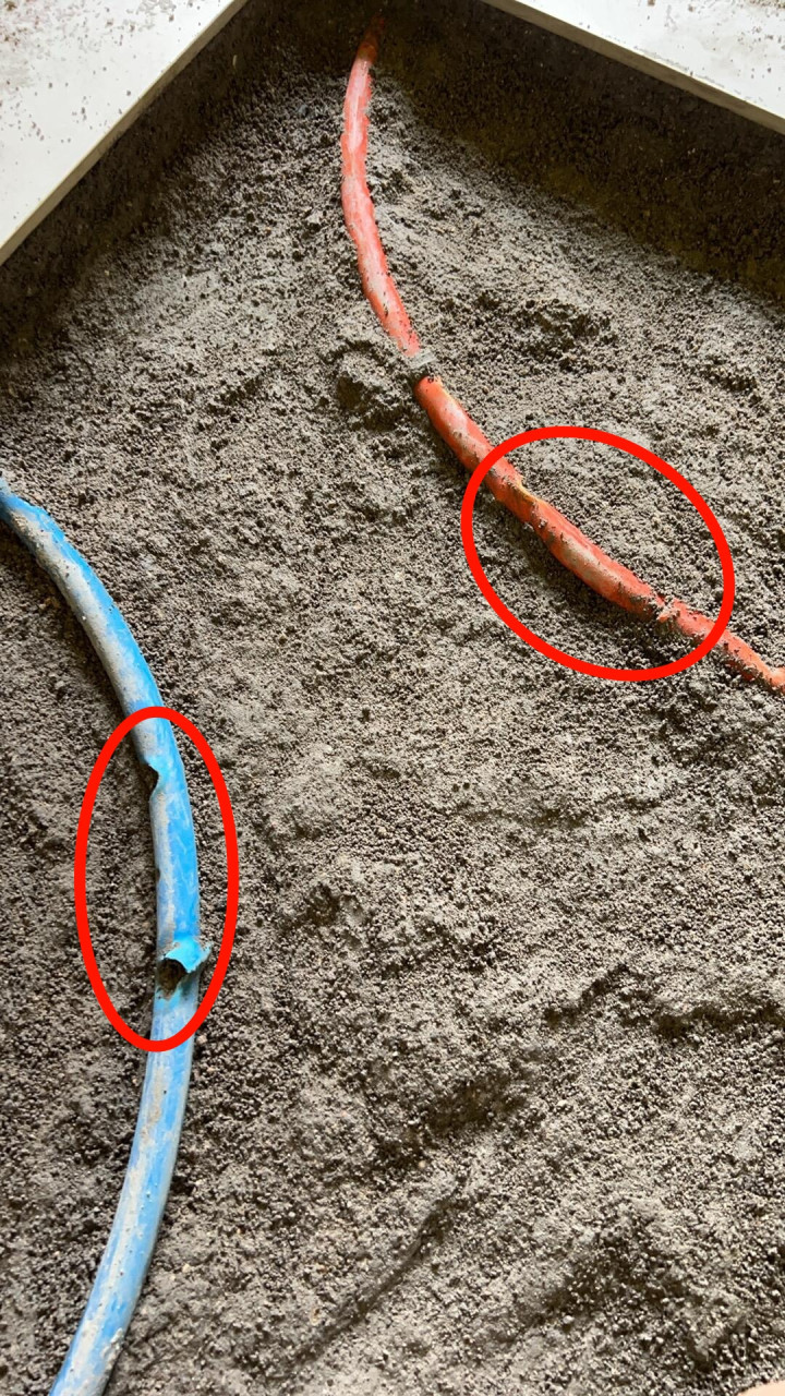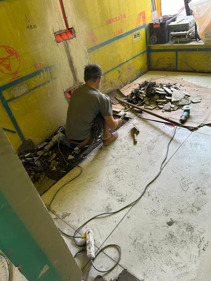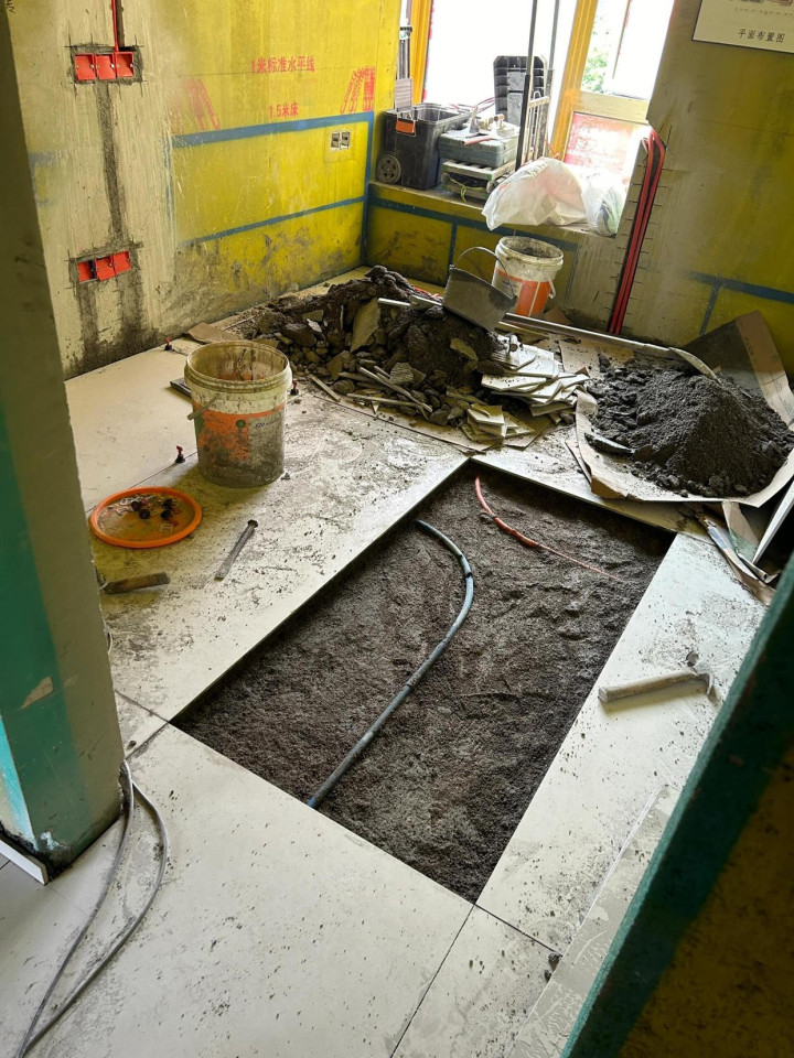 瓦工阶段没督工,瓷砖空饱读被发现了,瓦工灌了水泥砂浆拯救,隔天照旧空饱读。后头条款他重铺。于是瓦工师父撬砖把电线管给砸破了,径直把新瓷砖铺上去。 后头实时到了现场刚好拍到砸开的另外一个位置,电线管破了。