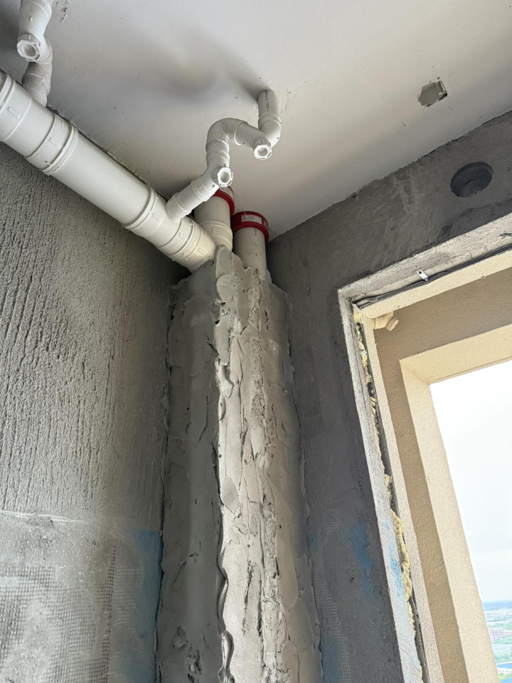 准备包隔音棉的,半天没去工地,工东谈主竟然用水泥径直把下水管糊完结。