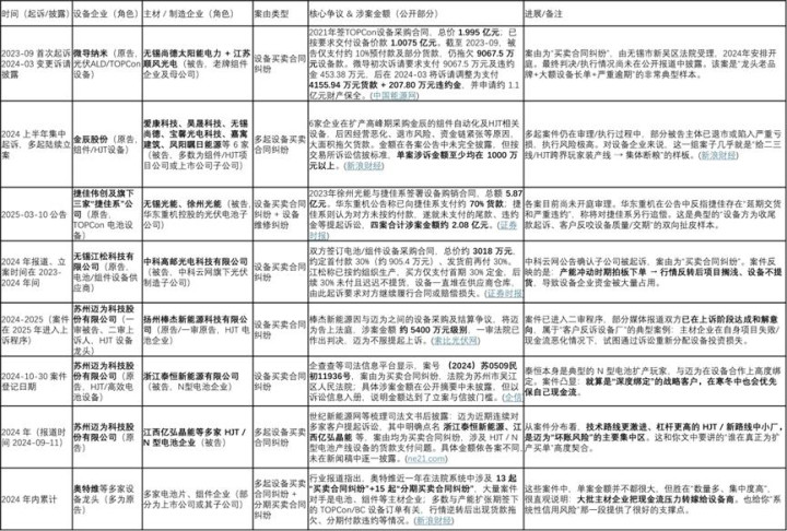 近三年典型光伏开垦企业、主材企业合同纠纷一览
